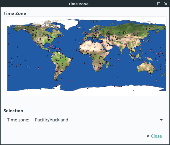 Click on one of the red dots in your timezone/location. Click on Close to finish.