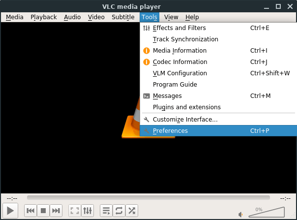 Before we can start playing media files across the network, we need to set up VLC so that it can access and play files remotely. In Linux Lite, click on Menu, Multimedia, VLC Media Player. With VLC open, click on Tools, Preferences.