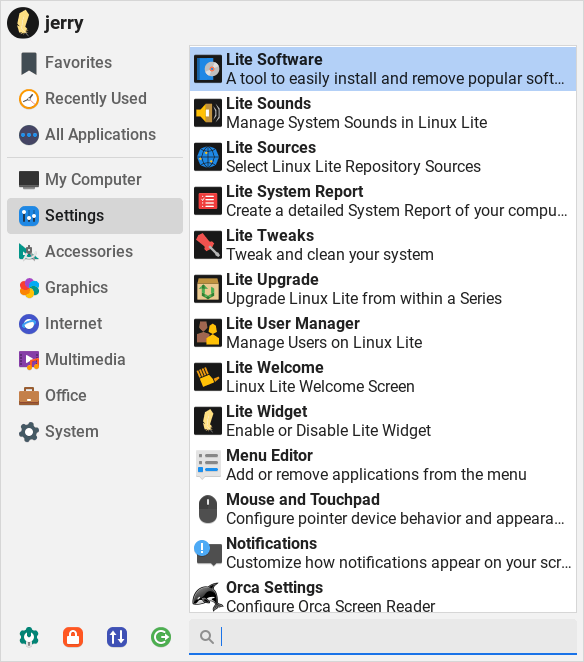 Let's install NitroShare. Menu, Settings, Lite Software. Enter your password and click on yes to update sources now.