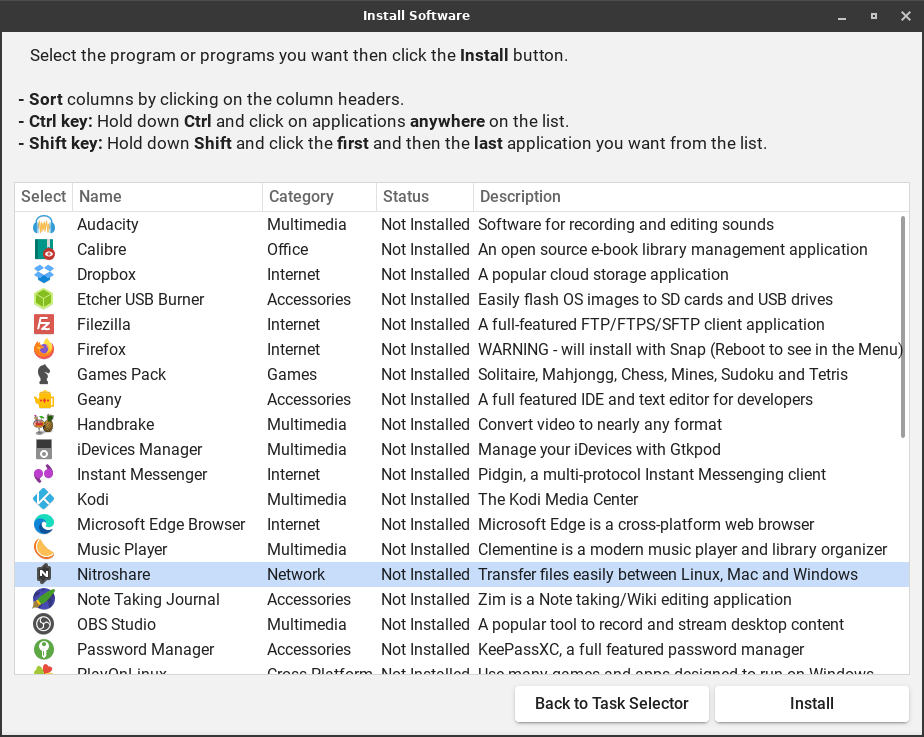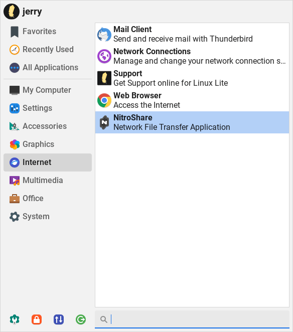 Left click on NitroShare and click on Install at the bottom right. Proceed with the installation. When the installation has finished, quit Lite Software.