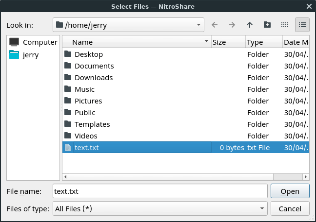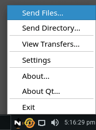 Let's send someone else on the network running NitroShare a file. Both computers MUST be on the same network, ie. connected to the same router. Right click on the NitroShare tray icon, select Send Files.