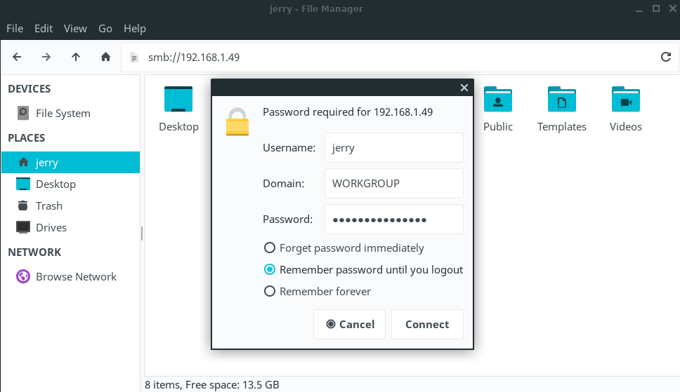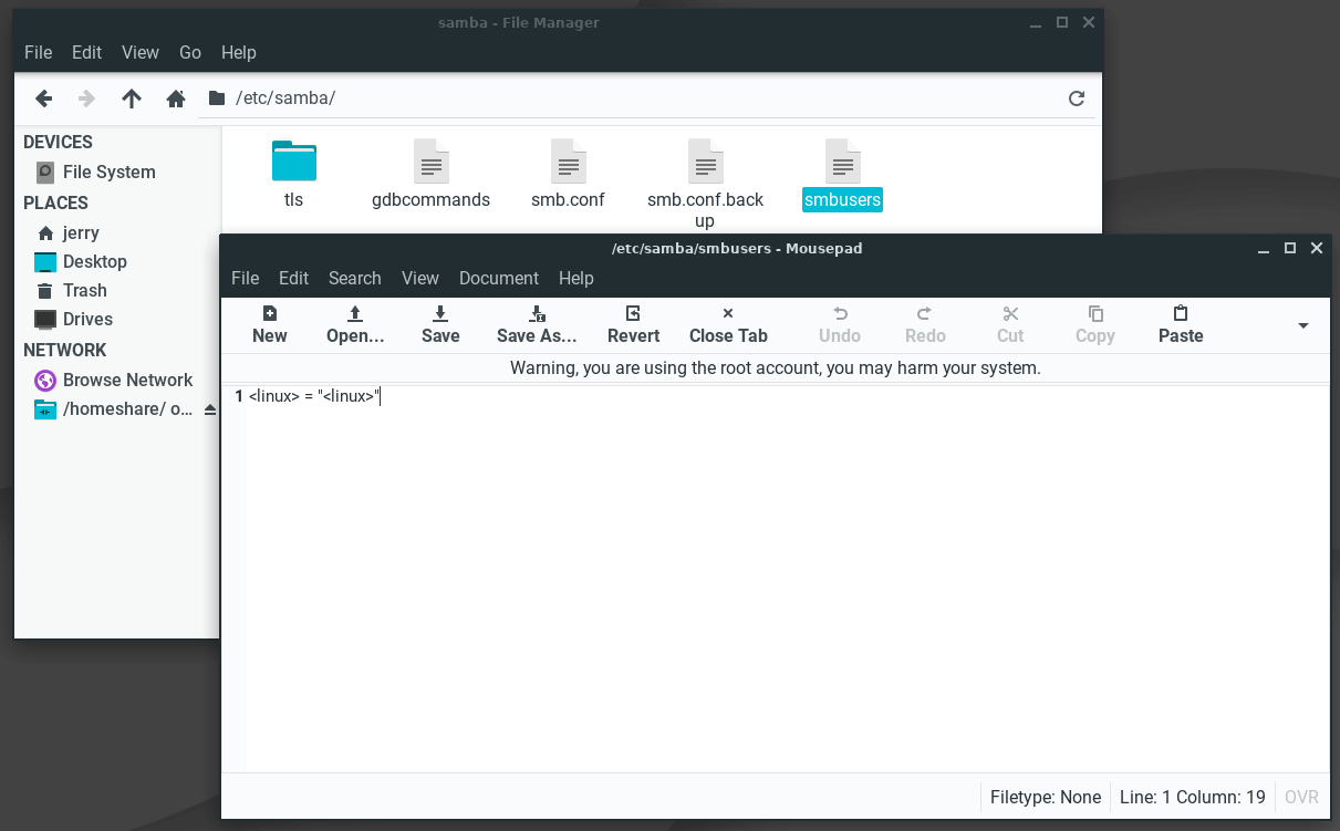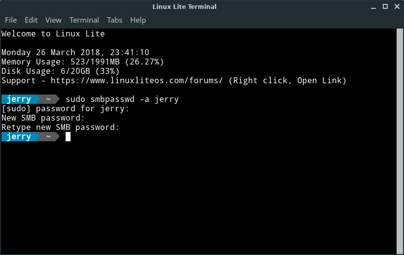 ...where name is your Linux Lite username; in our case the username is jerry. For easily remembering the SMB password, you can use the same password for SMB as that in your Linux Lite user account if you wish.