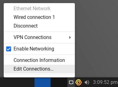 Make sure Enable Networking has a tick beside it. The first step is to left click on the network tray icon and select Edit Connections.