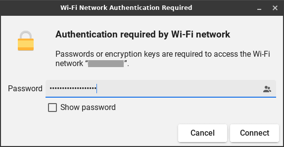 A box will pop up asking for your wireless password. If you would like to view your password while you type it, tick the 'Show password' box to ensure that you have entered your wireless password correctly.