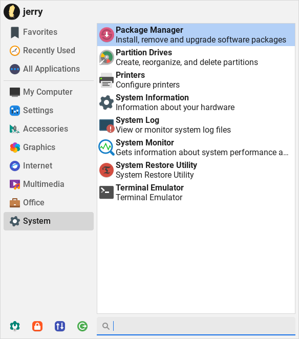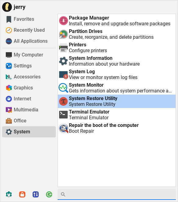 Go to Menu, System, System Restore Utility.