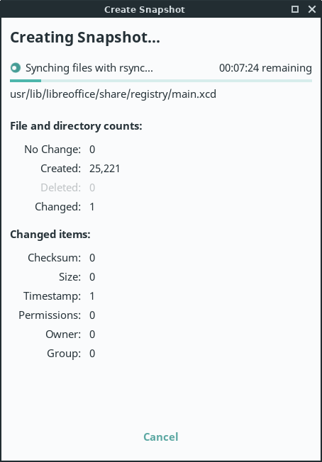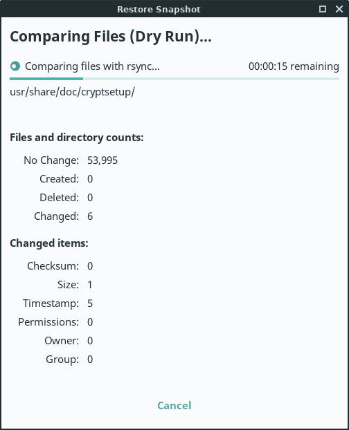 Timeshift will then simulate a Restore by performing a 'Dry run'. This takes place to ensure the Restore process runs without error.