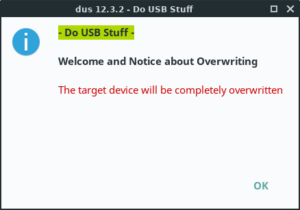 Make sure the correct USB device is listed and selected and click on OK.