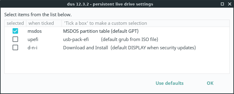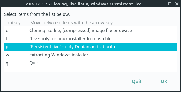 Select 'Persistent live' - only Debian and Ubuntu and click on OK.