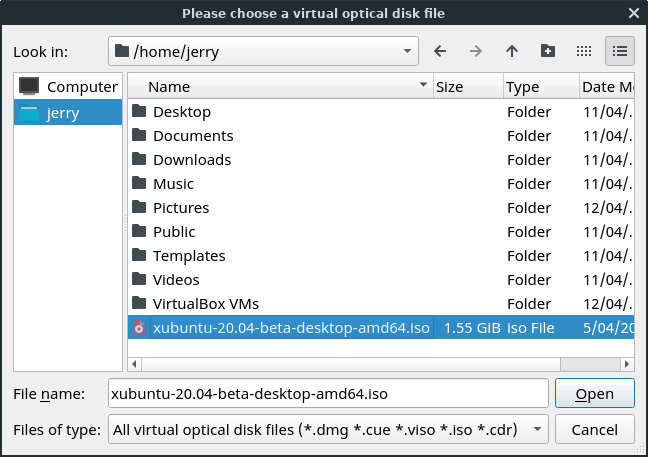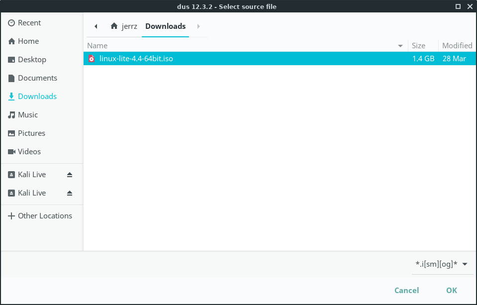 Select the Linux Lite ISO image file.