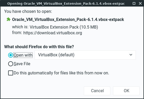 Choose Open with: VirtualBox.