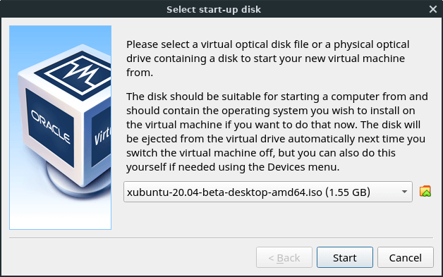 After you've found and selected your ISO, it will appear filled in the source box. Hit Start and it will now boot from the live ISO/CD/DVD.